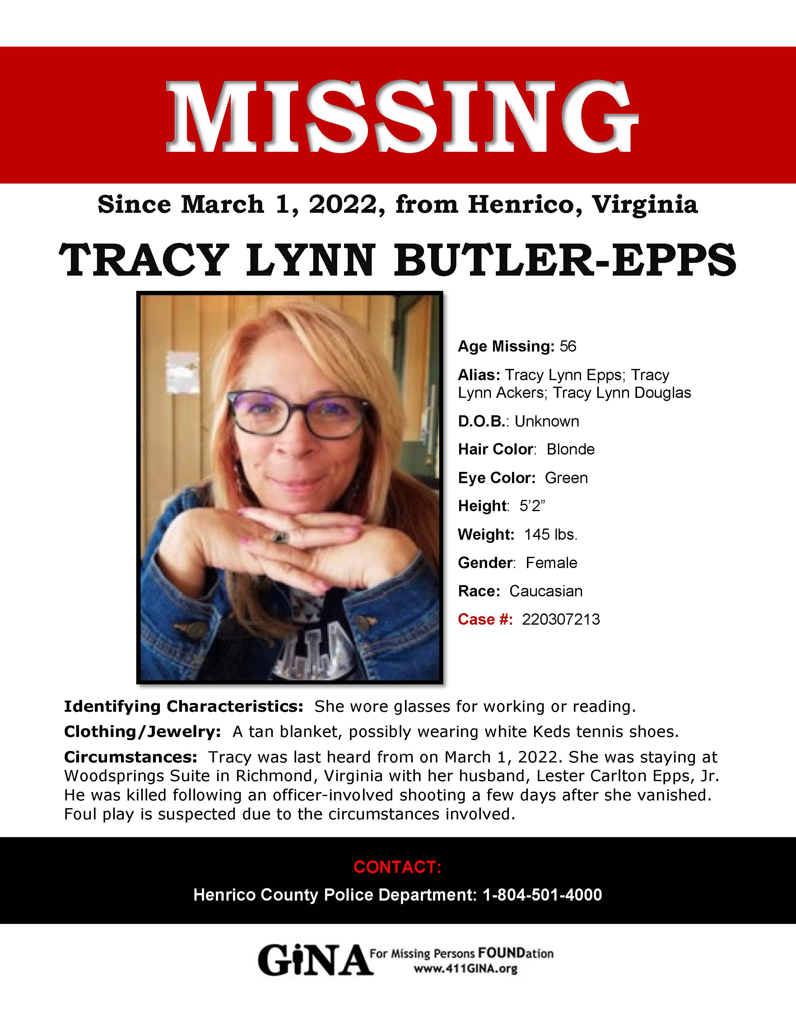 In October 2024, the GINA FOUNDation sponsored the First Annual Nebraska Missing Persons Day. The Second Annual Nebraska Missing Persons Day was held in Lincoln, Nebraska on October 17, 2025 at the State Capitol.