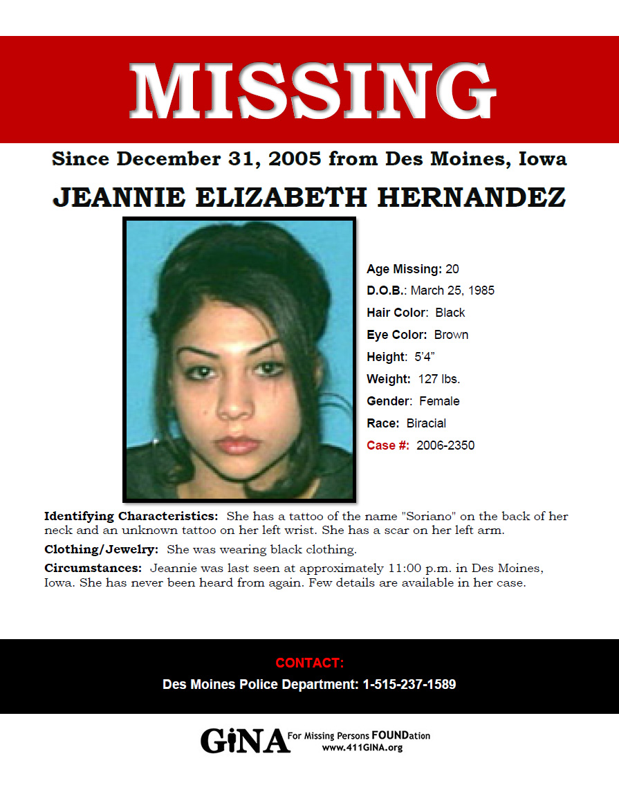 You can be a voice for the missing by sharing their flyers, holding events, and more.  Click here for more information on how to be of help.  You can also help by donating to GINA.  Your donations keep us going in our efforts to bring the missing home.